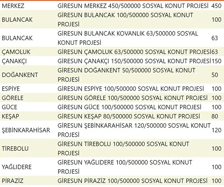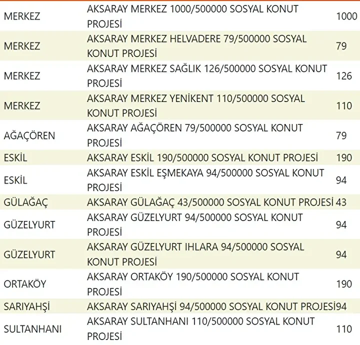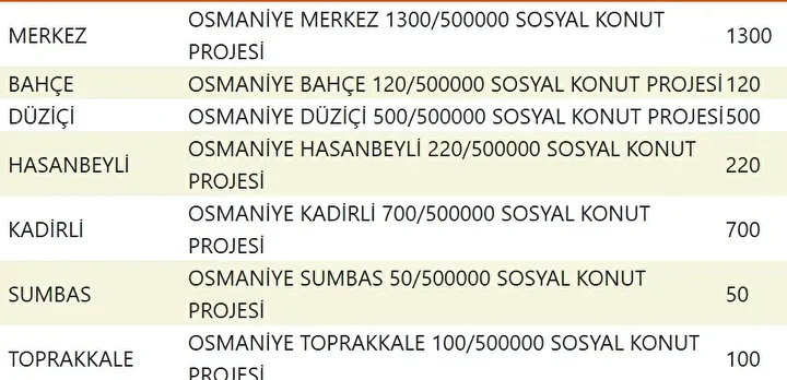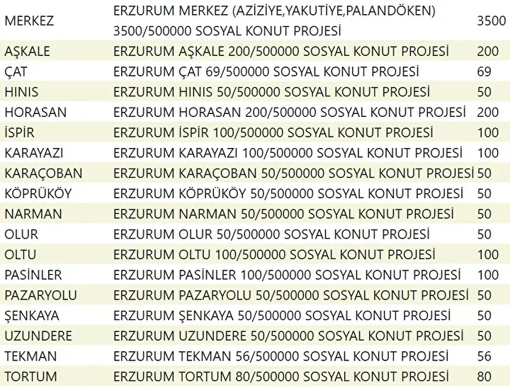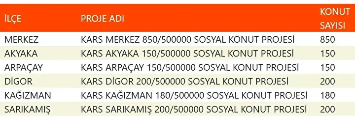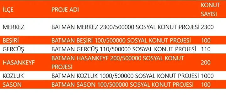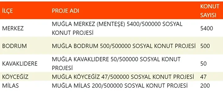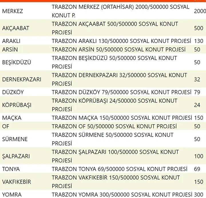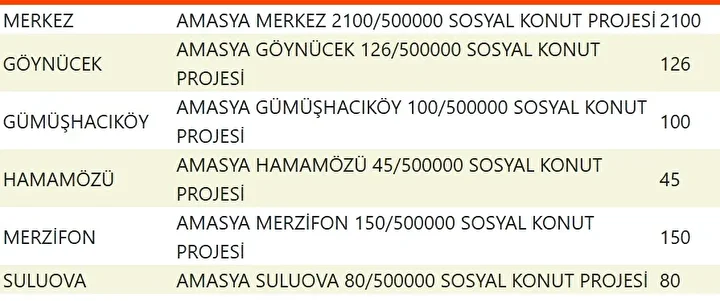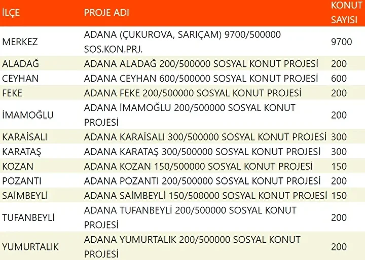 Projede en fazla konutun yapılacağı iller İstanbul, Ankara, İzmir, Bursa ve Konya olarak kayıtlara geçti. Bu doğrultuda 81 ilde 500 bin konutun yükseleceği ilçeler de netleşti.