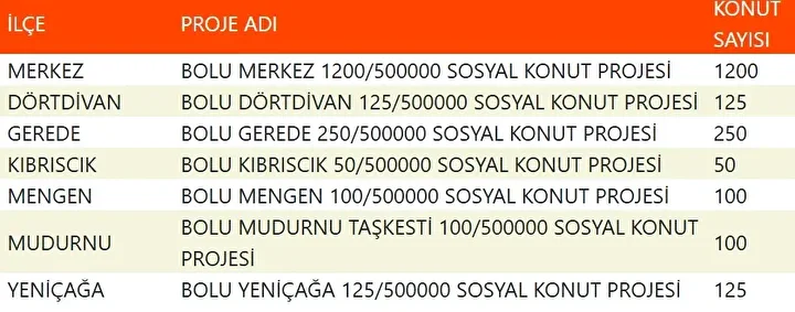 Bursa’da 17 bin 225 konut, Karacabey, Gürsu, Kestel, Nilüfer, Büyükorhan, Gemlik, Harmancık, İnegöl, İznik, Keles, Mudanya, Mustafakemalpaşa, Orhaneli, Orhangazi ve Yenişehir ilçelerinde yer alacak.