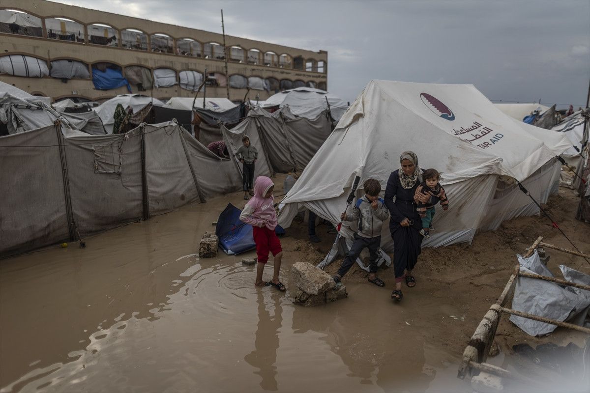 Yerinden edilmiş kişilerin kaldığı çok sayıda yerleşim yerinde şiddetli yağmurun etkili olmaya başladığına ve orta şiddette yağmurun bile hızla tehlikeli hale gelebileceğine değinilen açıklamada, “Ateşkes anlaşmasına rağmen yerinden edilmiş Filistinliler, yükselen su seviyelerine karşı çok az koruma sağlanan aşırı kalabalık alanlarda yaşamaya devam ediyor.” ifadesi kullanıldı.